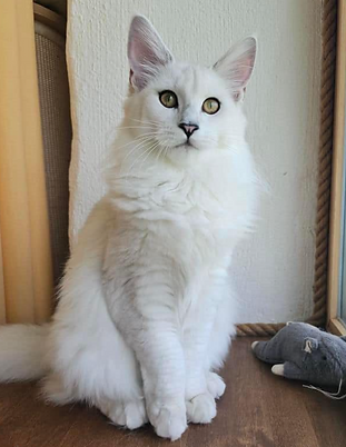 Trinity is our European import from a reputable breeder who specializes in shaded Maine Coon cats. She has tested clear on the full genetic panel, has strong hips, and a healthy heart. Trinity has an incredibly loving temperament, and we've truly enjoyed watching her mature into a stunning Maine Coon.